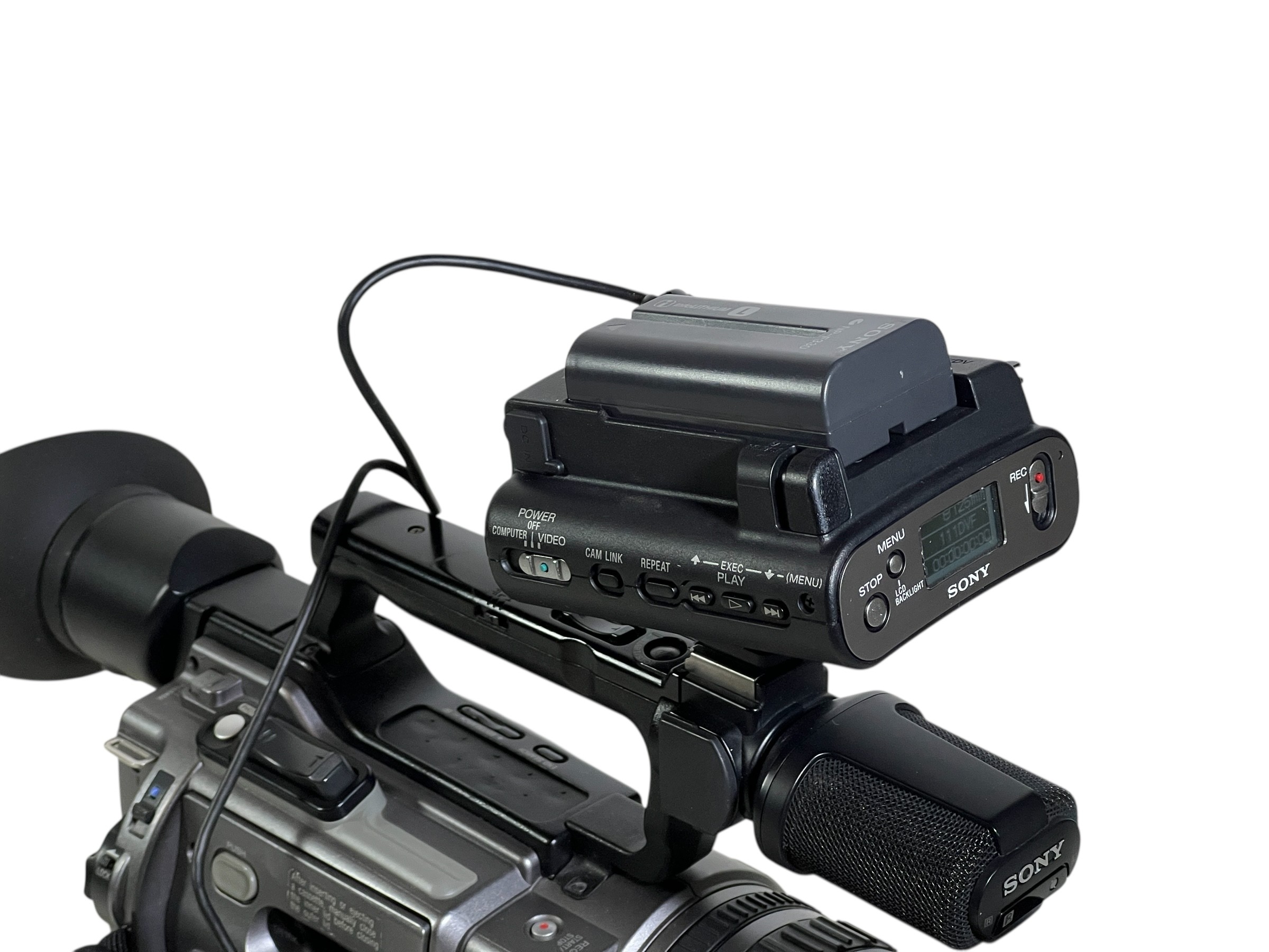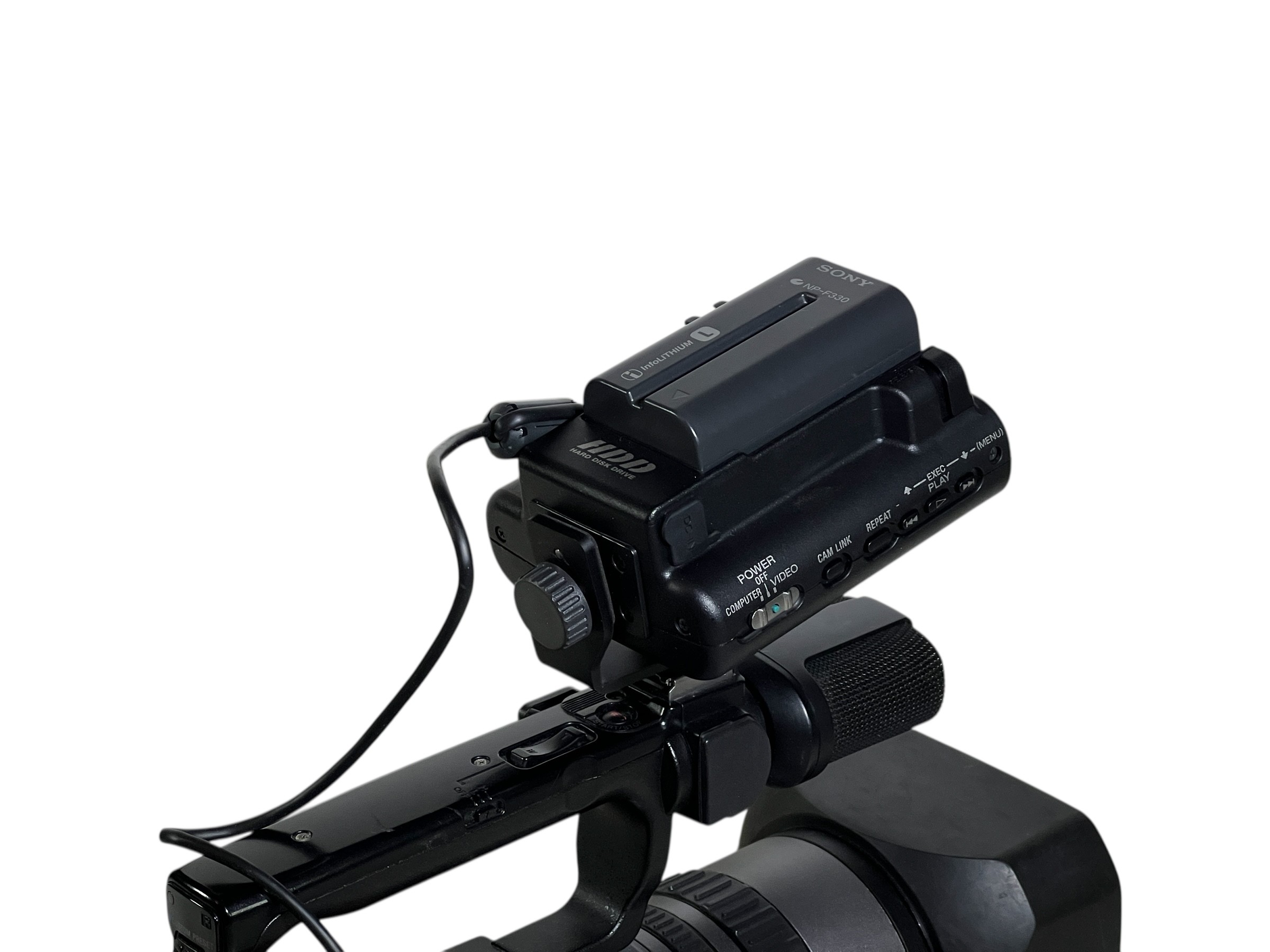 The recorder mounts to the side of Sony HDV camcorders or can be used standalone via FireWire.