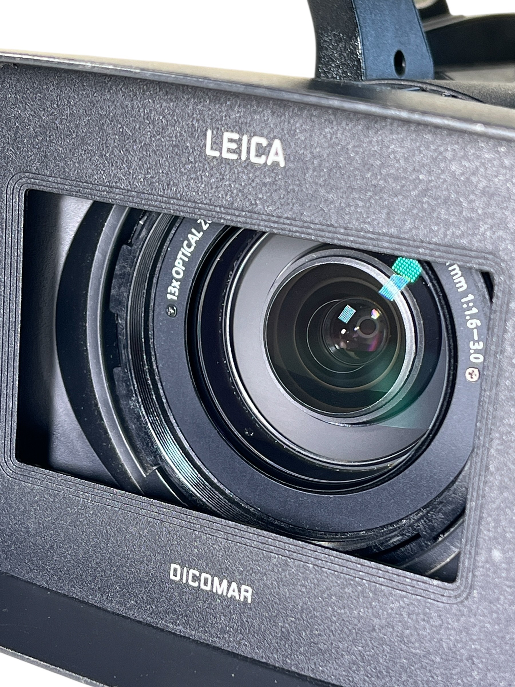 Lens: Leica Dicomar 13× optical zoom (3.9–51 mm; 28-368 mm equivalent; f/1.6–3.0)