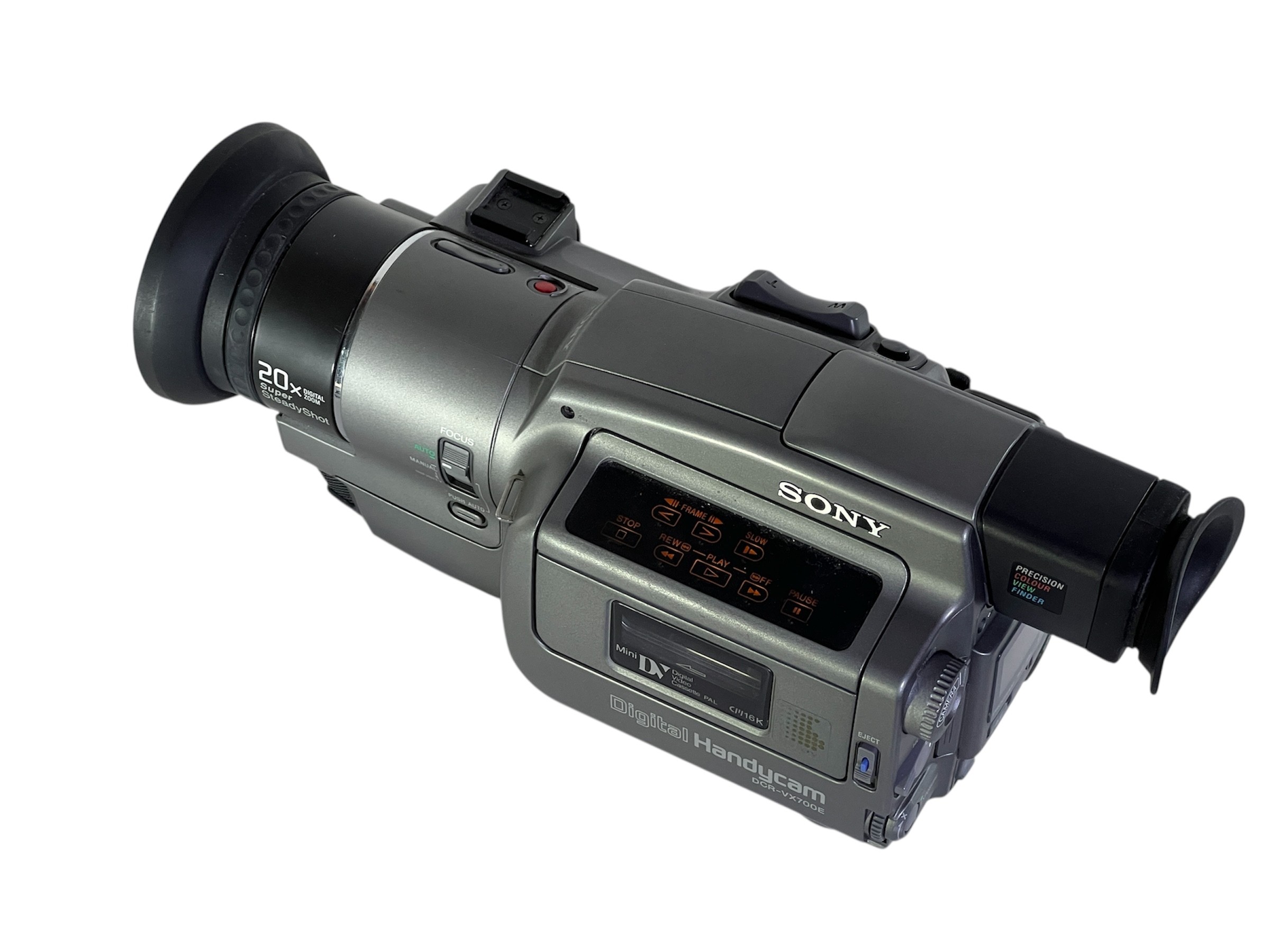 The Sony DCR-VX700E is a high-grade MiniDV camcorder offering excellent image quality and full manual controls in a compact and lightweight form. Built around a 1/3" CCD imaging block and Sony’s Super SteadyShot optical stabilisation, it delivers clean DV footage with a distinctive late-90s digital look that remains popular with filmmakers and collectors.